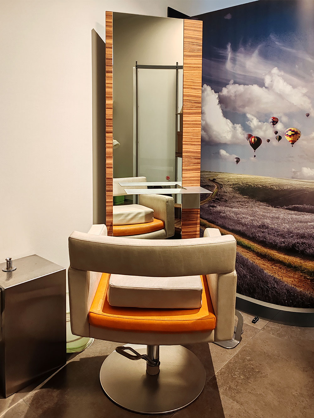 Ogni dettaglio è studiato per offrirti un’esperienza di bellezza rilassante. Lo spazio accogliente, illuminato da grandi vetrate, è caratterizzato da forme morbide e armoniche che creano un’atmosfera calda e invitante. I colori tenui e l’arredamento elegante si combinano per trasmettere un senso di serenità.